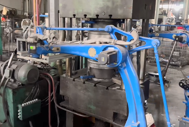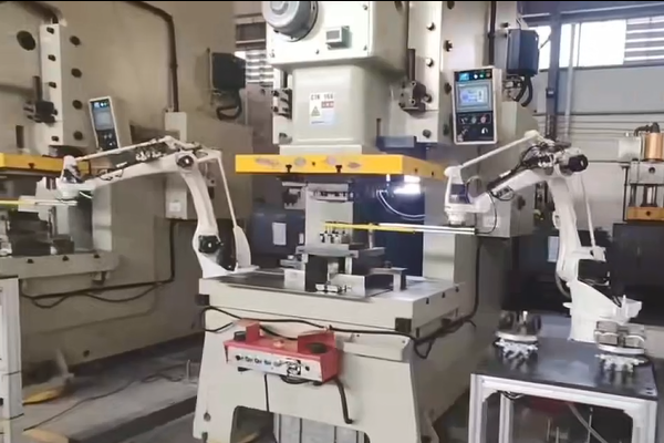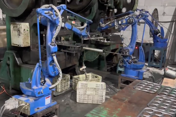 一些動作簡單但又重復作業的操作,以沖壓機器人代替人手工作,可以提高生產過程的自動化程度、生產效率,可以減少人力,便于有節奏的生產。